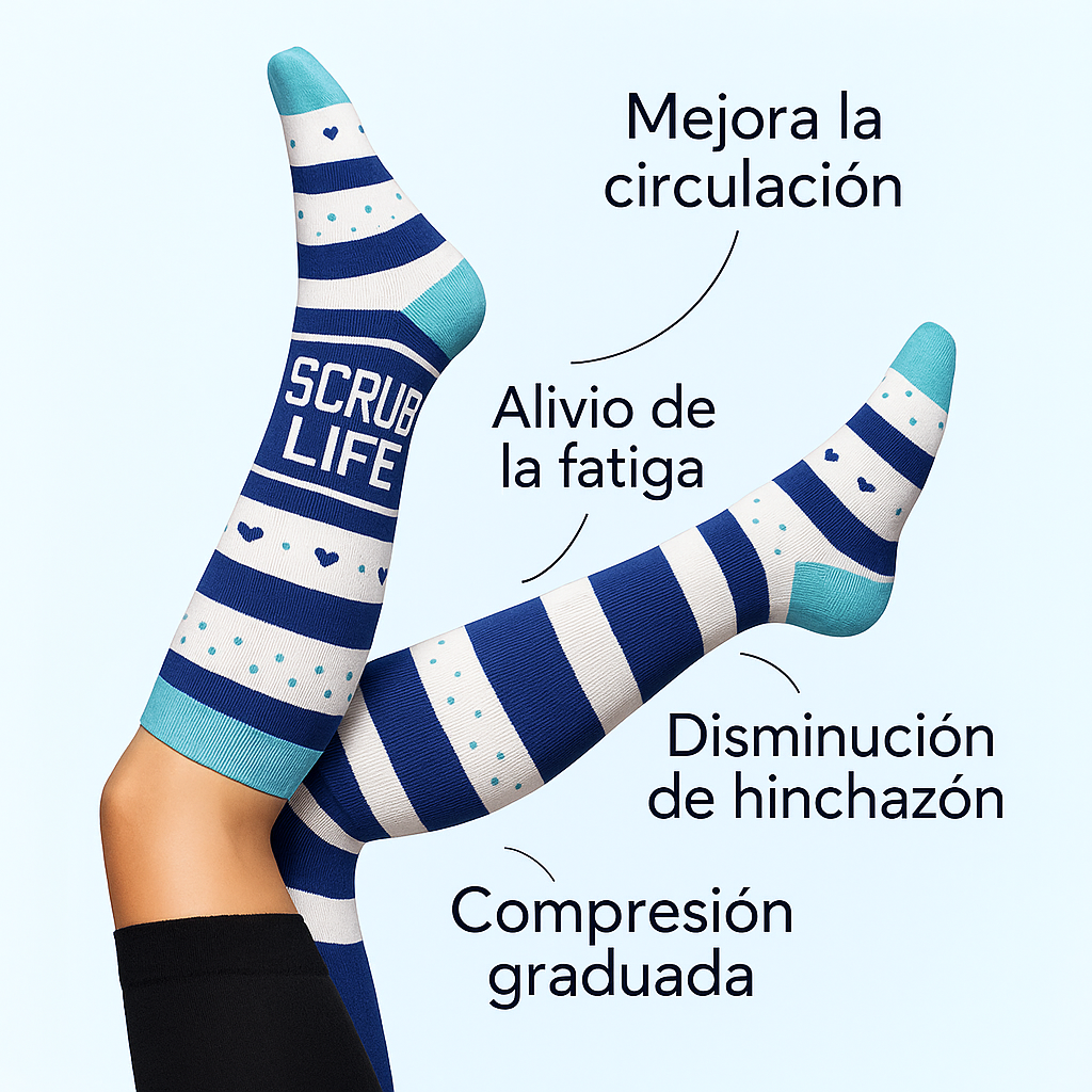 Están pensados especialmente para enfermeras, médicos, profesionales de la salud y todas las personas que pasan muchas horas de pie o sentadas. También son excelentes para deportistas o quienes sufren de hinchazón, várices o cansancio en las piernas.