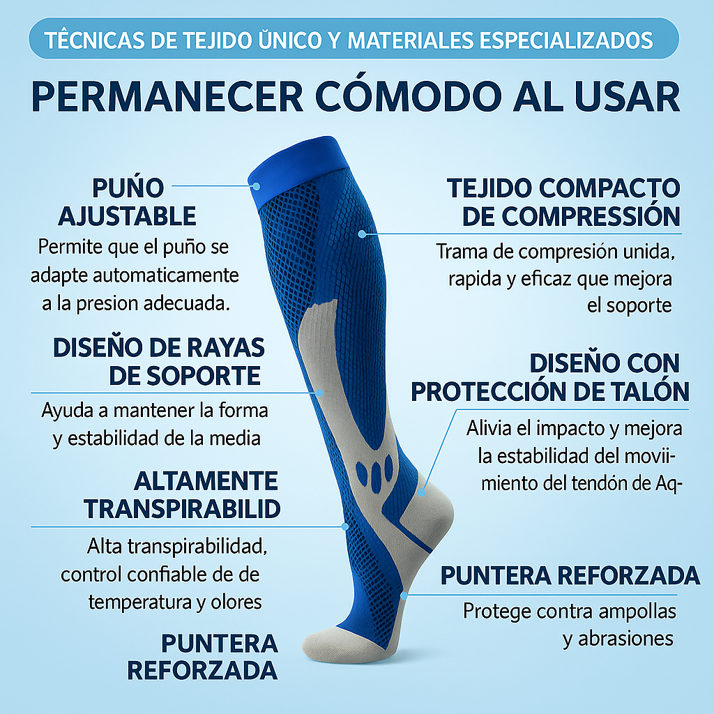 Diseñados con compresión gradual inteligente, mejoran la circulación y proporcionan confort constante sin importar tu rutina.